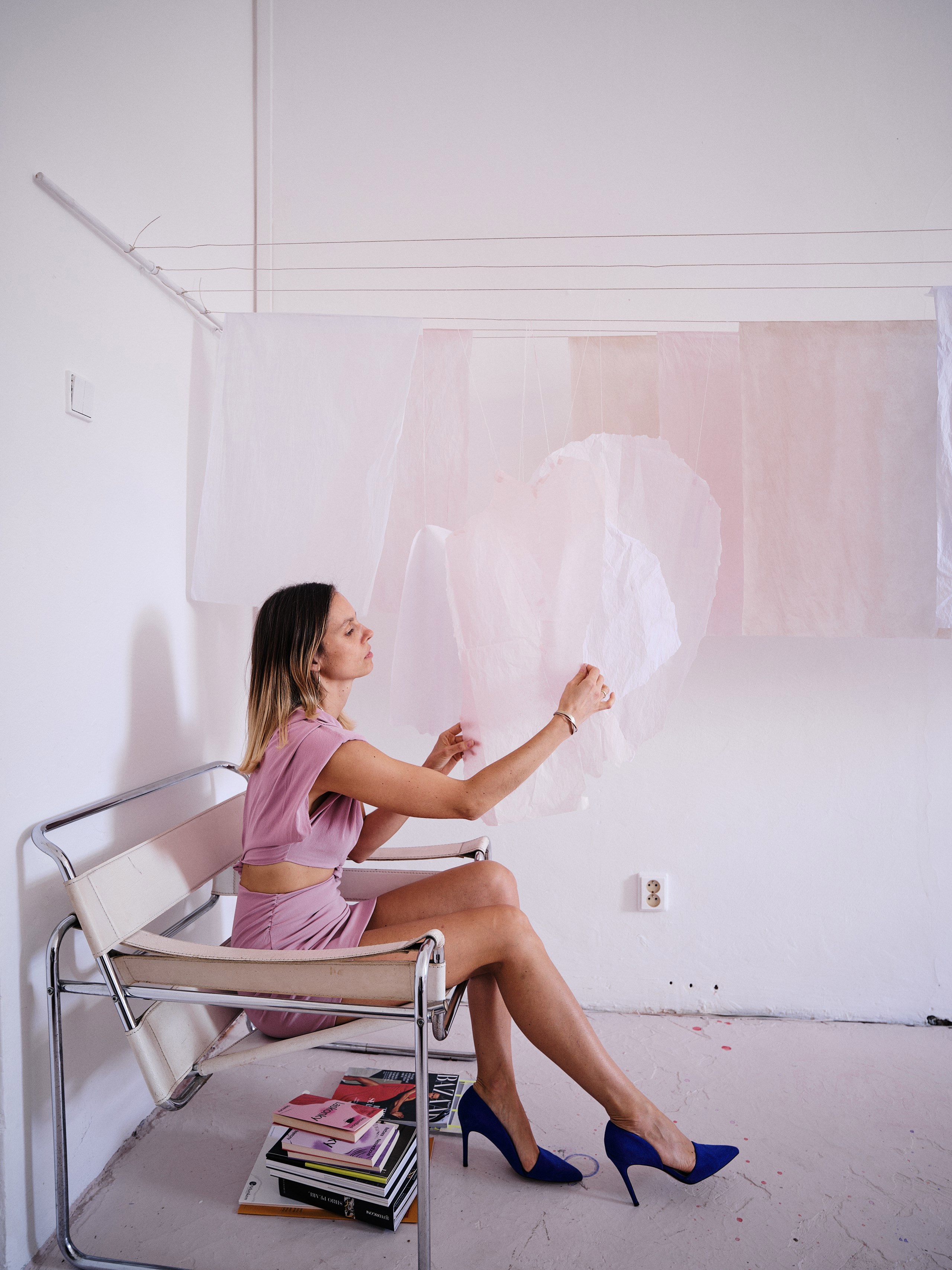 zkoumá krásu, něhu a křehkost, které zachycuje s výrazným citem pro detail a atmosféru. Ráda pracuje s jemnými materiály, jako je hedvábný papír, a typicky kombinuje minimalismus s ženskostí a smyslem pro vizuální experiment.
