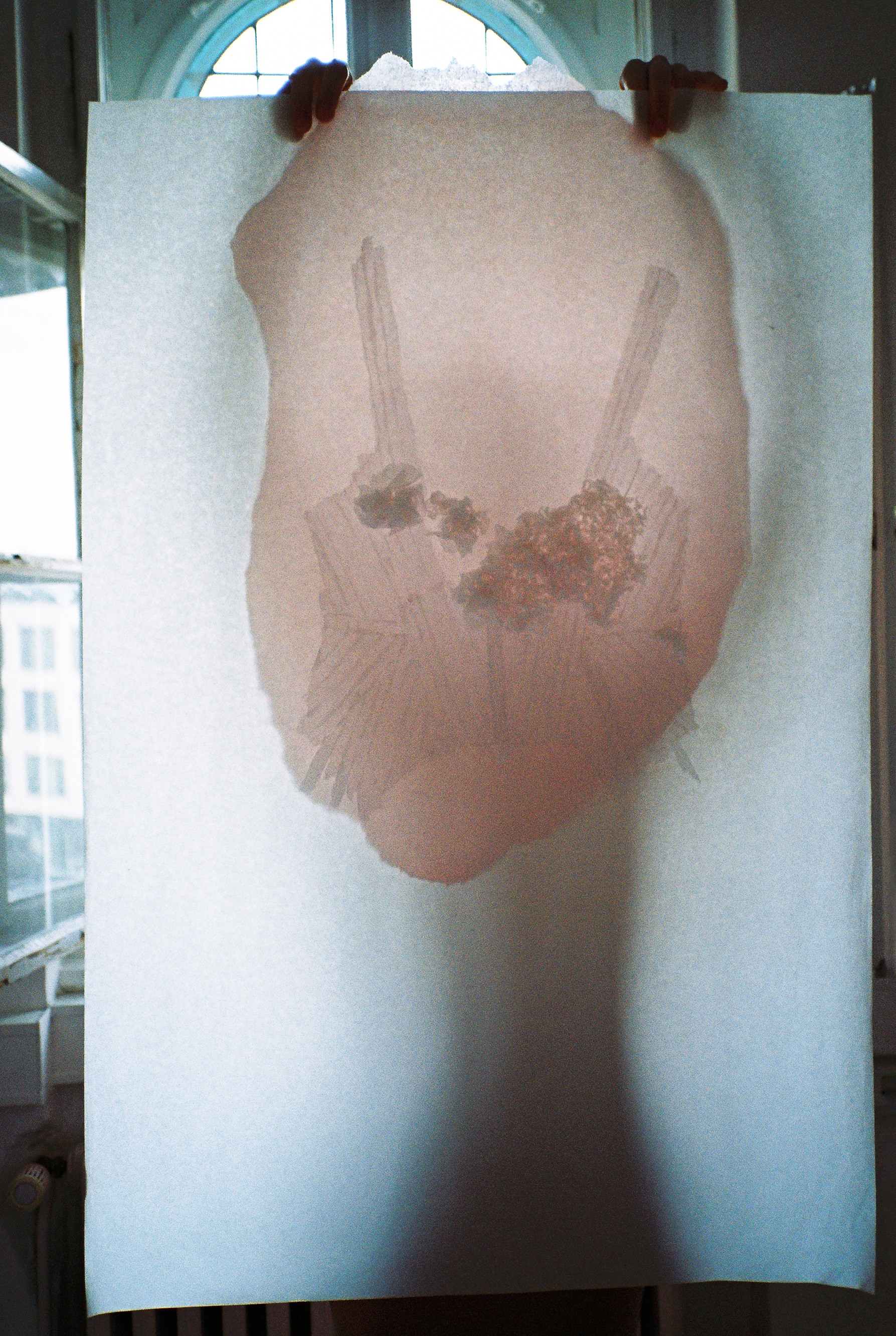 Papírové artefakty, vzniklé v dialogu s jemností a křehkostí použitého materiálu, otevírají otázky blízkosti, hledání a nastavování hranic i vnitřní zranitelnosti. Štumpfová, jejíž tvorba se vyvíjela od módy přes ilustraci až po volnou grafiku, přirozeně propojuje mezioborové zkušenosti a hledá nové cesty vizuálního vyjádření.