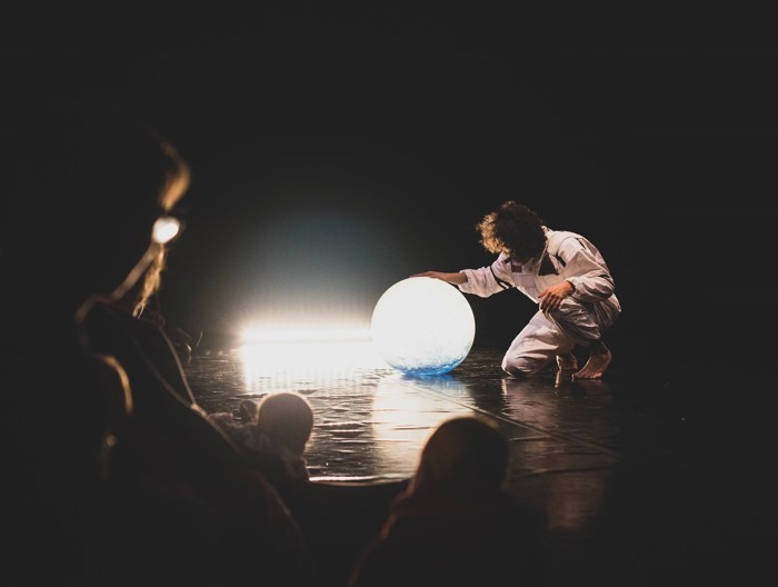 Představení nabízí dětem první kontakt s divadlem – respektuje jejich potřeby a citlivě je uvádí do světa pohybů, zvuků a dotyků. Už od 10 měsíců si totiž miminka začínají pamatovat věci kolem sebe a svět, který bezprostředně nevidí, pro ně už začíná existovat.