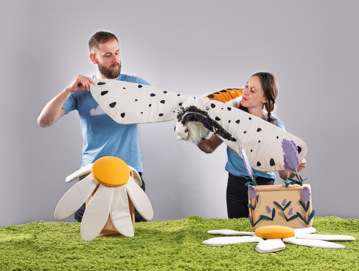 Loutková inscenace sleduje životní cestu motýla od vajíčka až po dospělého jedince. Každé vývojové stádium slouží jako příležitost k rozvoji specifických dětských dovedností. V úvodu se zaměřujeme na rozpoznávání tvarů. Ve fázi housenky poznáváme bylinky rostoucí na louce, pracujeme s vůněmi a rozvíjíme pozitivní paměťové stopy. Při zakuklení se seznamujeme s různými textilními materiály. Ve fázi dospělosti se všechny předchozí smyslové podněty vracejí, aby si děti mohly nově nabyté zkušenosti upevnit a prohloubit.