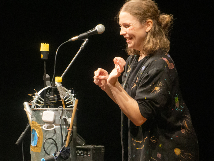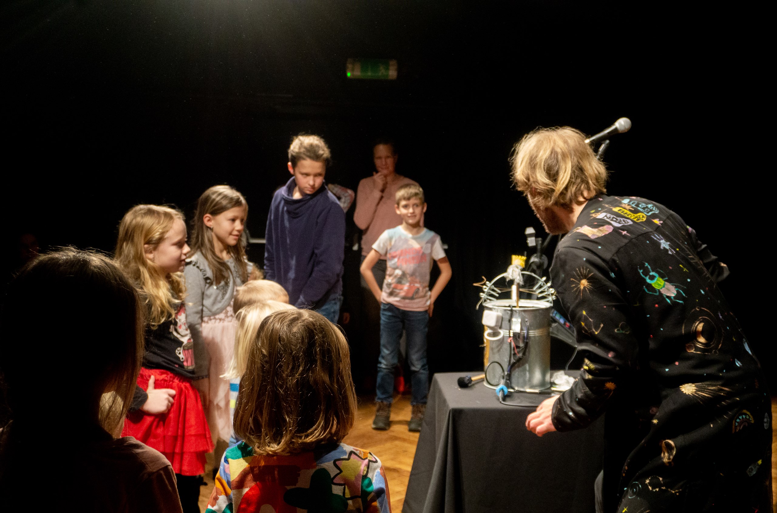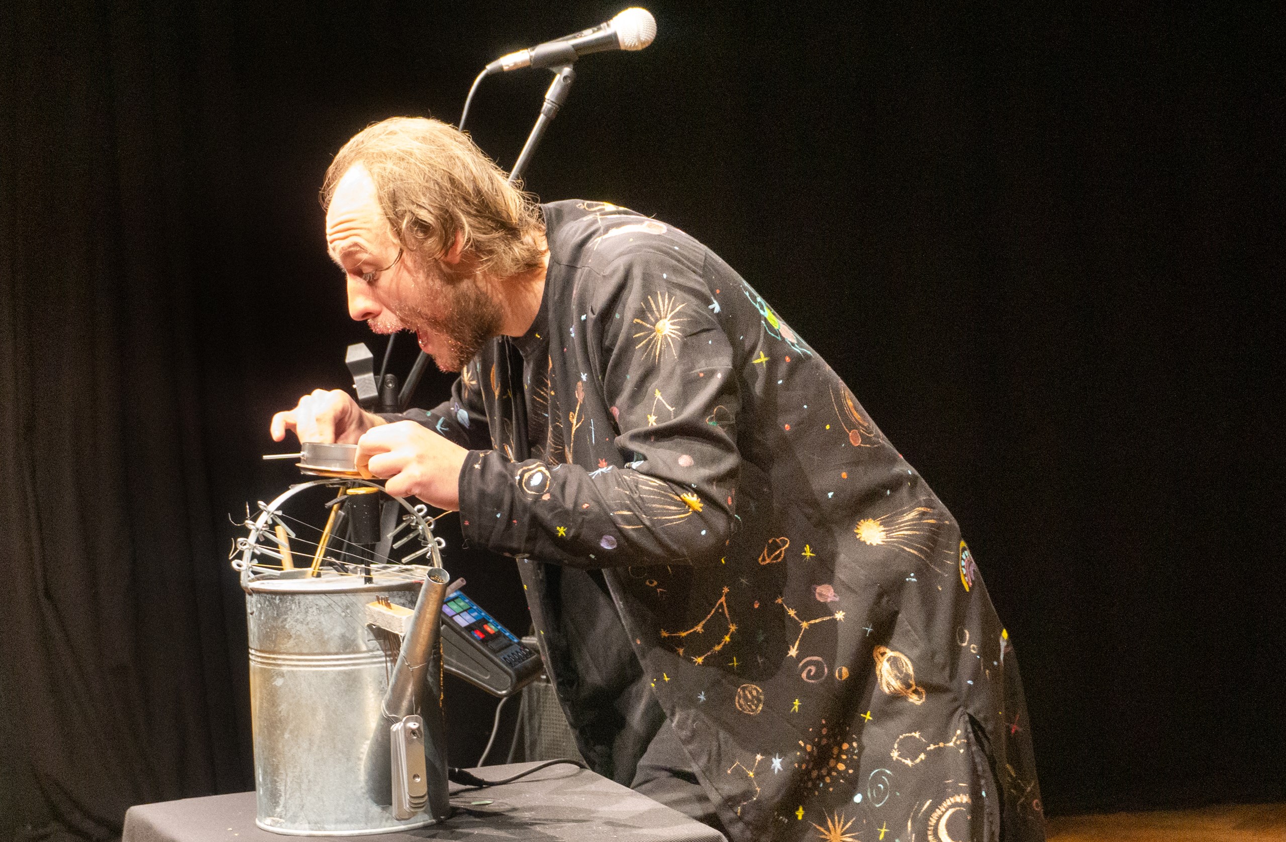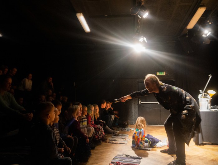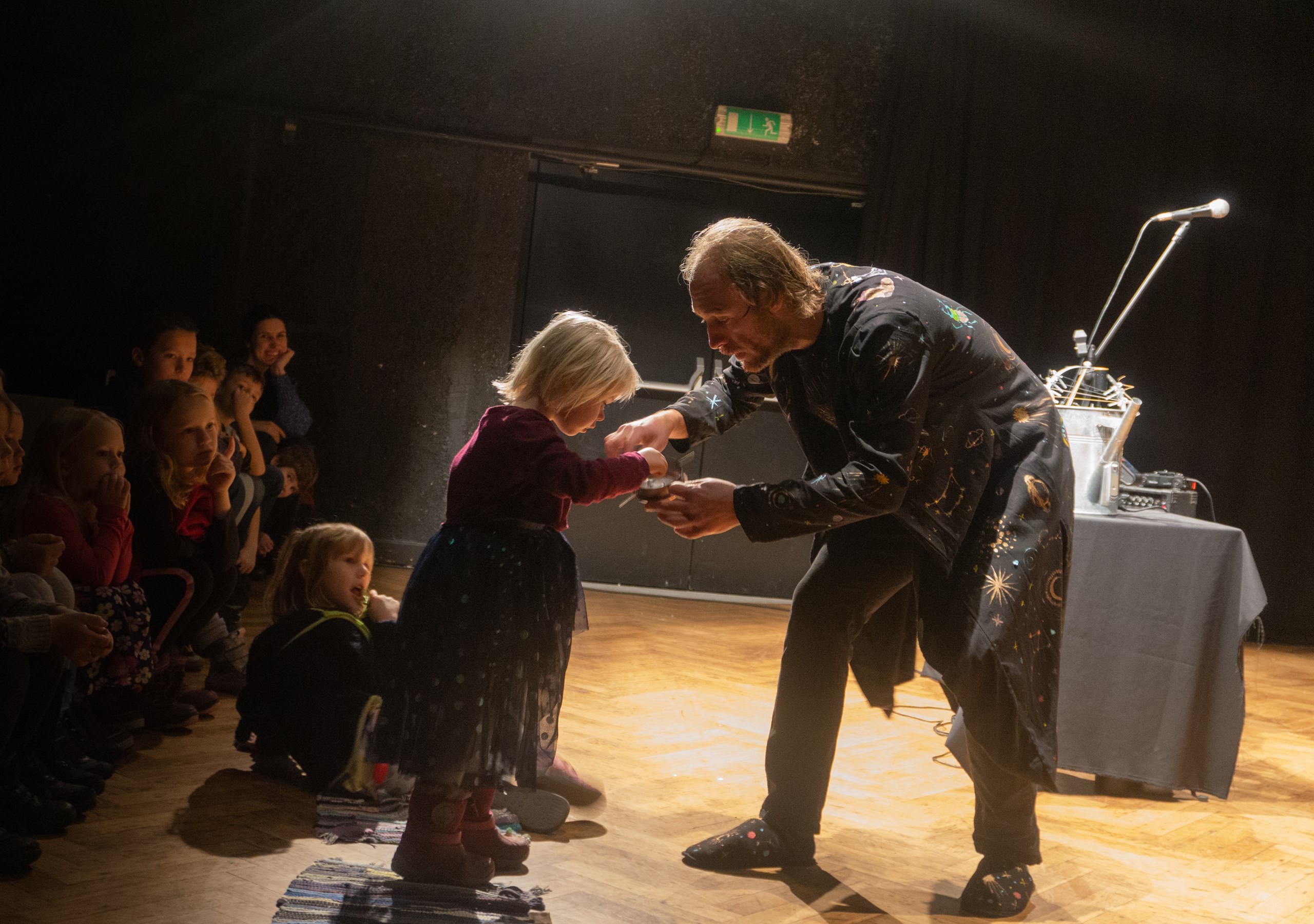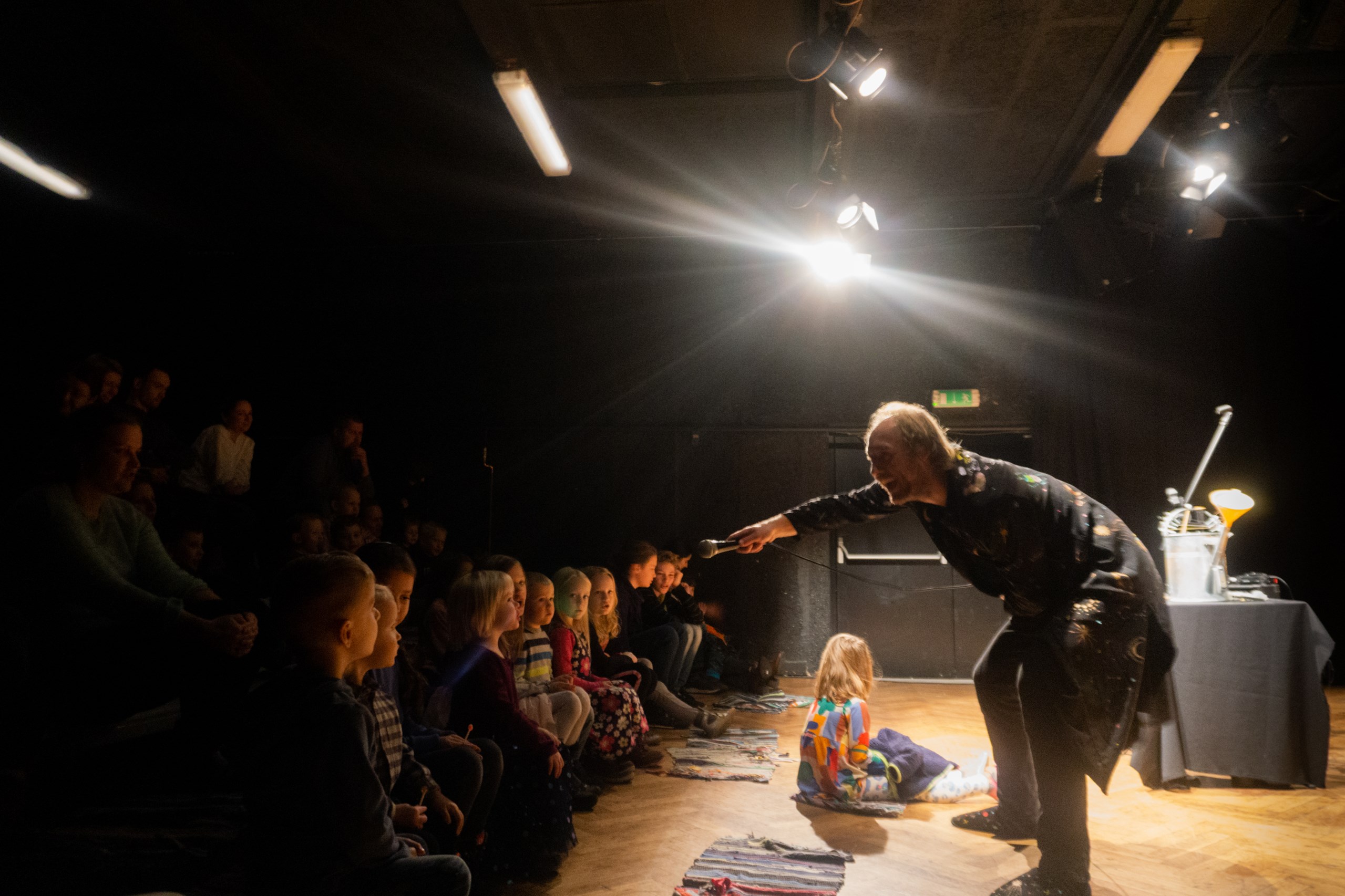 Inscenace vychází z předlohy od Astrid Lindgrenové Země soumraku. Herec vypráví dětem příběh a díky mikrofonu a vokálnímu procesoru, který může modulovat hlas a vytvářet různé efekty, vykouzlí pro děti iluzi různých prostorů a postav. Během představení si děti budou moct různé efekty a práci s mikrofonem vyzkoušet a díky tomu si některé postavy a atmosféry zažijí opravdu na vlastní kůži.