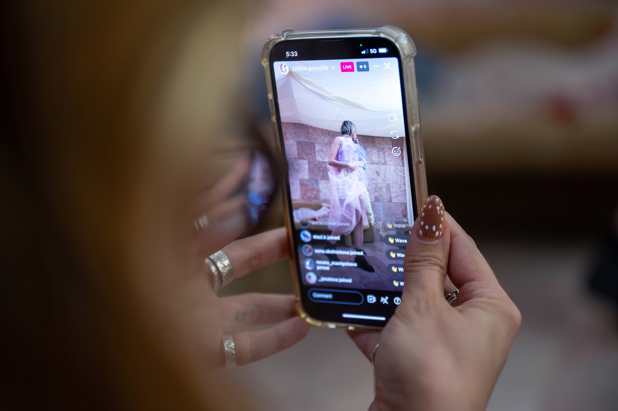 Růžový salonek ožil instalací a performancí talentované módní návrhářky Anny Tran, inspirovanou postavou Ofélie ze Shakespearova díla. Součástí vernisáže byla její debutová minipřehlídka, během níž se představené modely staly živou součástí prostoru. Po skončení akce se proměnily v umělecké exponáty, které mohli návštěvníci obdivovat v Růžovém salonku před každým představením.