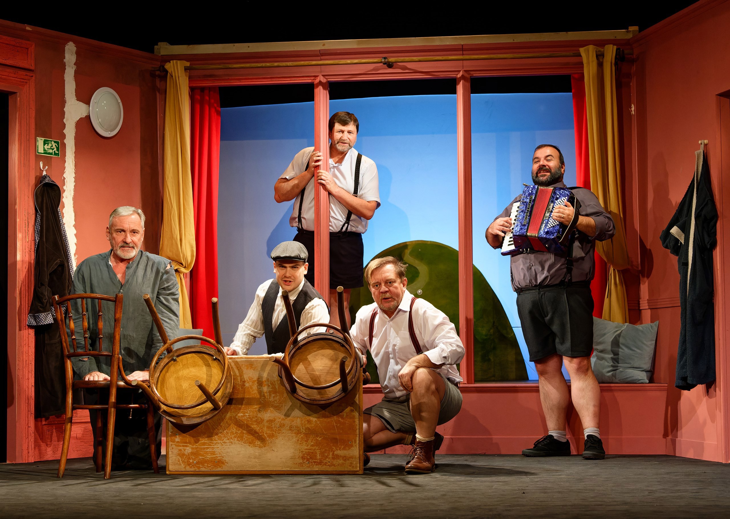 Komedie NA OCET sleduje dva životní smolaře (Lenku Vlasákovou a Jana Dolanského), jejichž náhodné setkání otevírá nečekanou naději. Novocirkusové THE LOSERS přináší energii, akrobacii i syrový obraz dnešní uspěchané doby. Rozverná salónní komedie LORDI sází na vtip, nadsázku a herecký šarm Martina Hofmanna, Filipa Rajmonta, Petera S. Butka. Hudební inscenace EVA! vzdává poctu Evě Pilarové. Petra Králová získala za tuto roli širší nominaci na Cenu Thálie 2025. A muzikálová klasika SUGAR! (NĚKDO TO RÁD HORKÉ) nabízí bláznivou jízdu převleků, záměn a skvělých hudebních čísel.