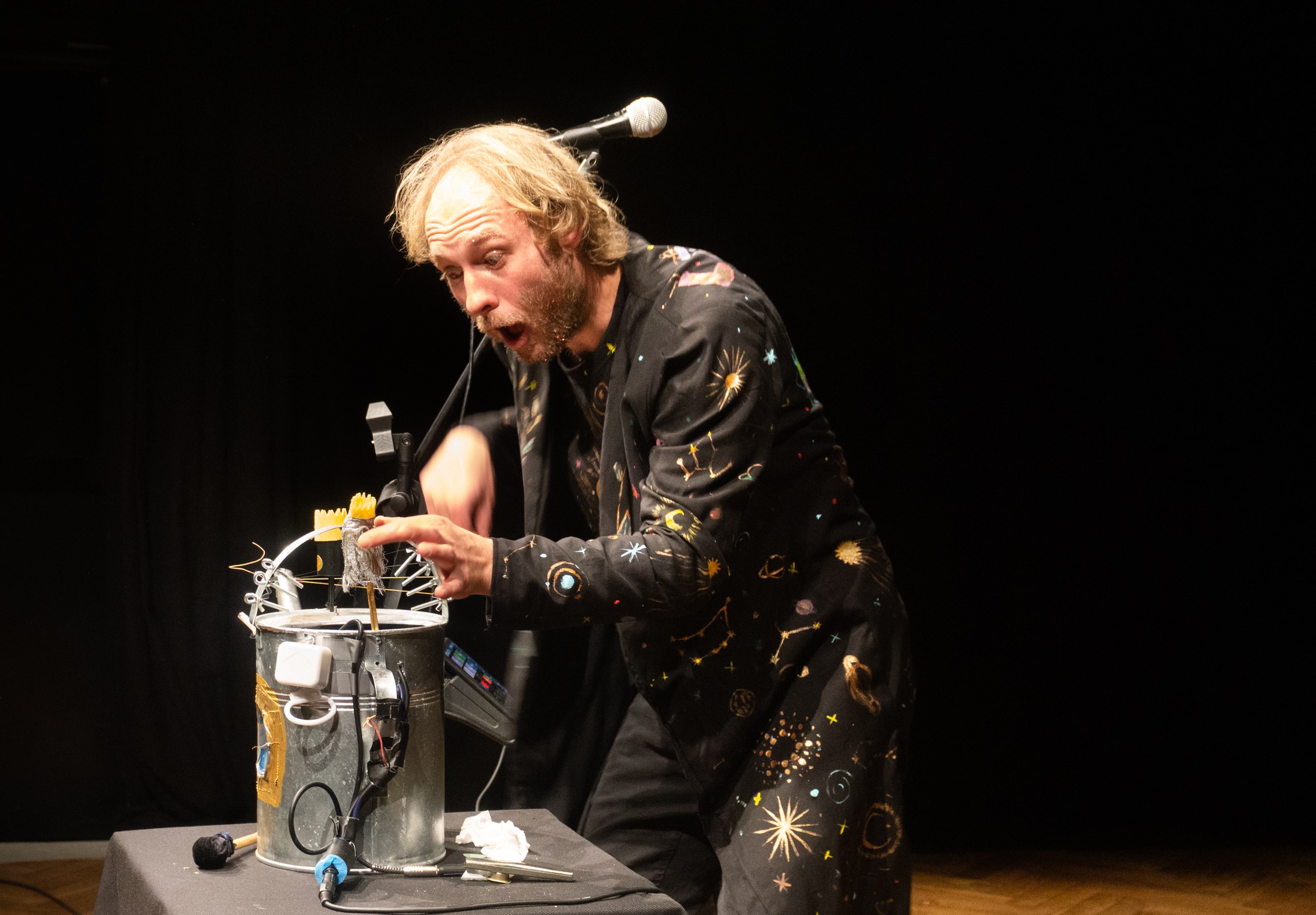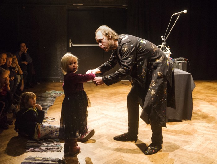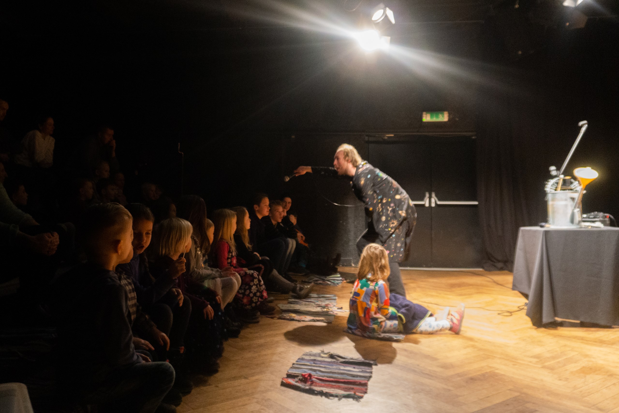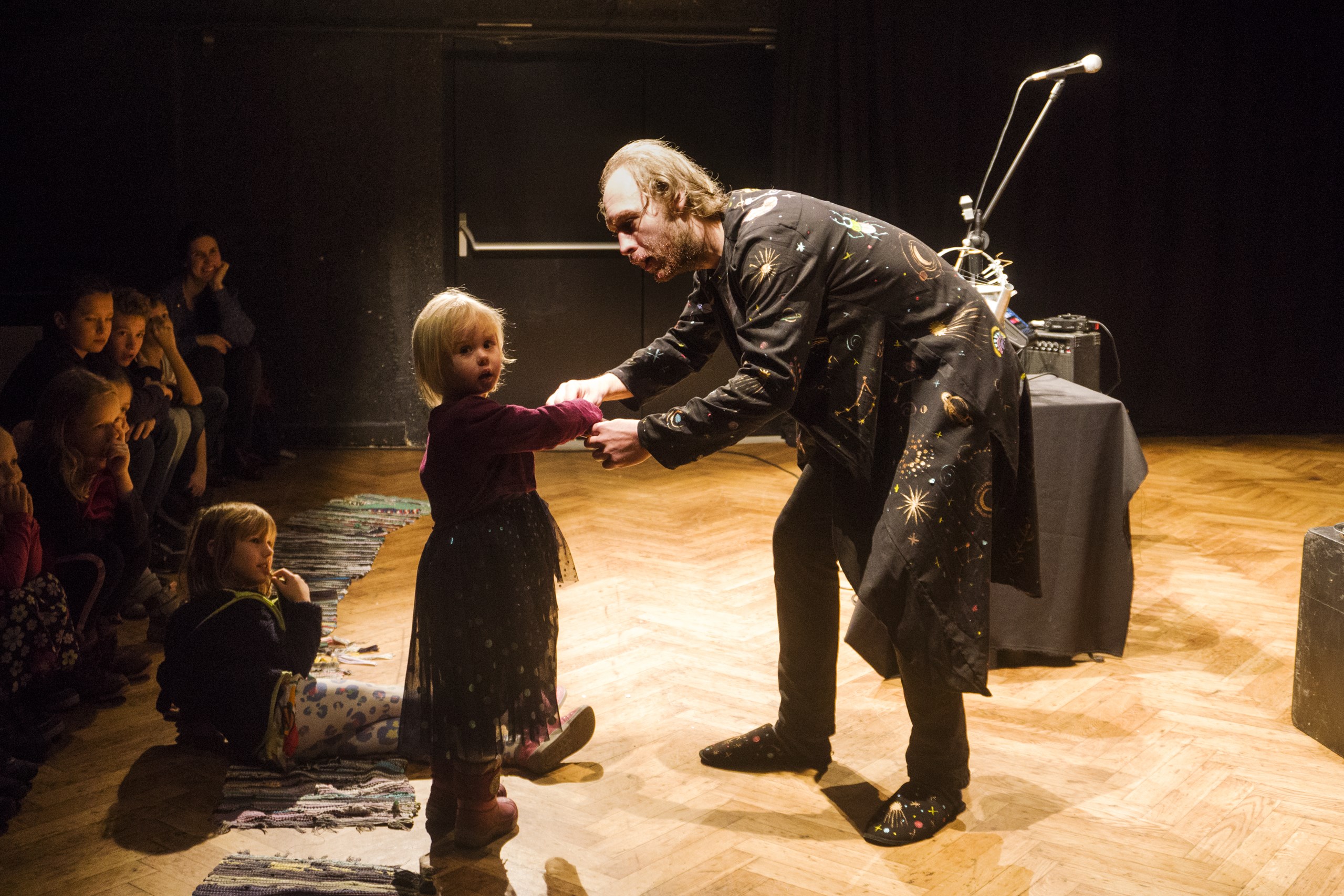 Inscenace vychází z předlohy od Astrid Lindgrenové Země soumraku. Herec vypráví dětem příběh a díky mikrofonu a vokálnímu procesoru, který může modulovat hlas a vytvářet různé efekty, vykouzlí pro děti iluzi různých prostorů a postav. Během představení si děti budou moct různé efekty a práci s mikrofonem vyzkoušet a díky tomu si některé postavy a atmosféry zažijí opravdu na vlastní kůži.