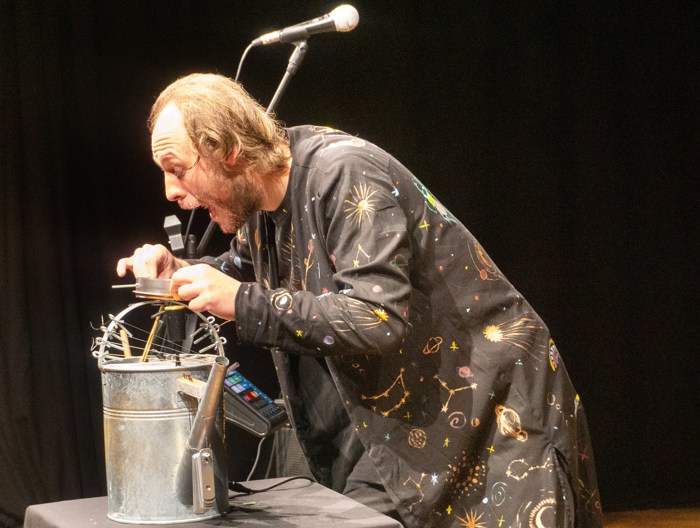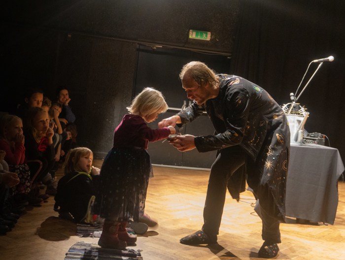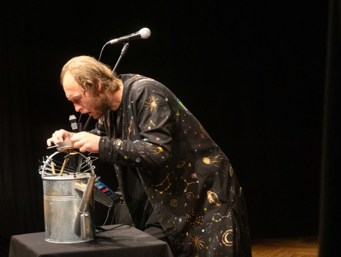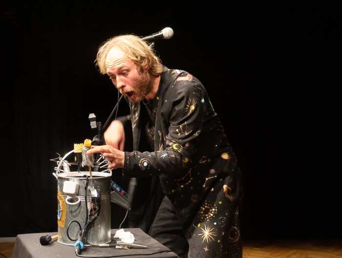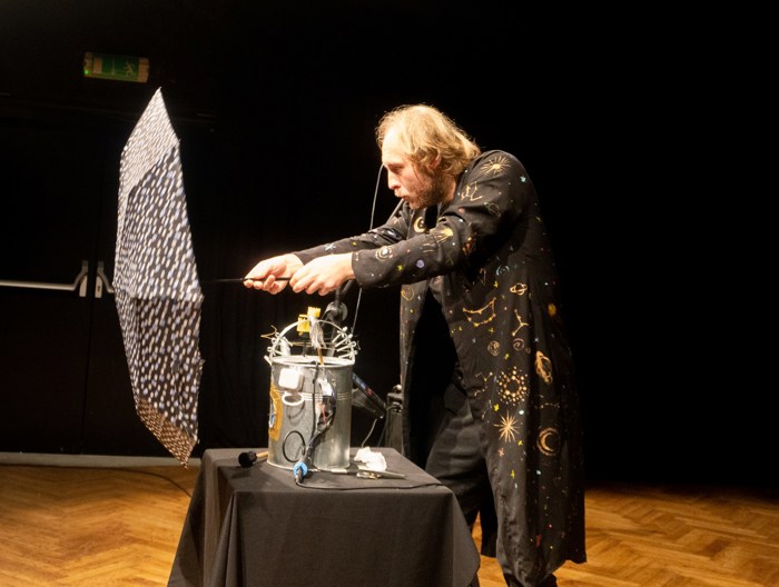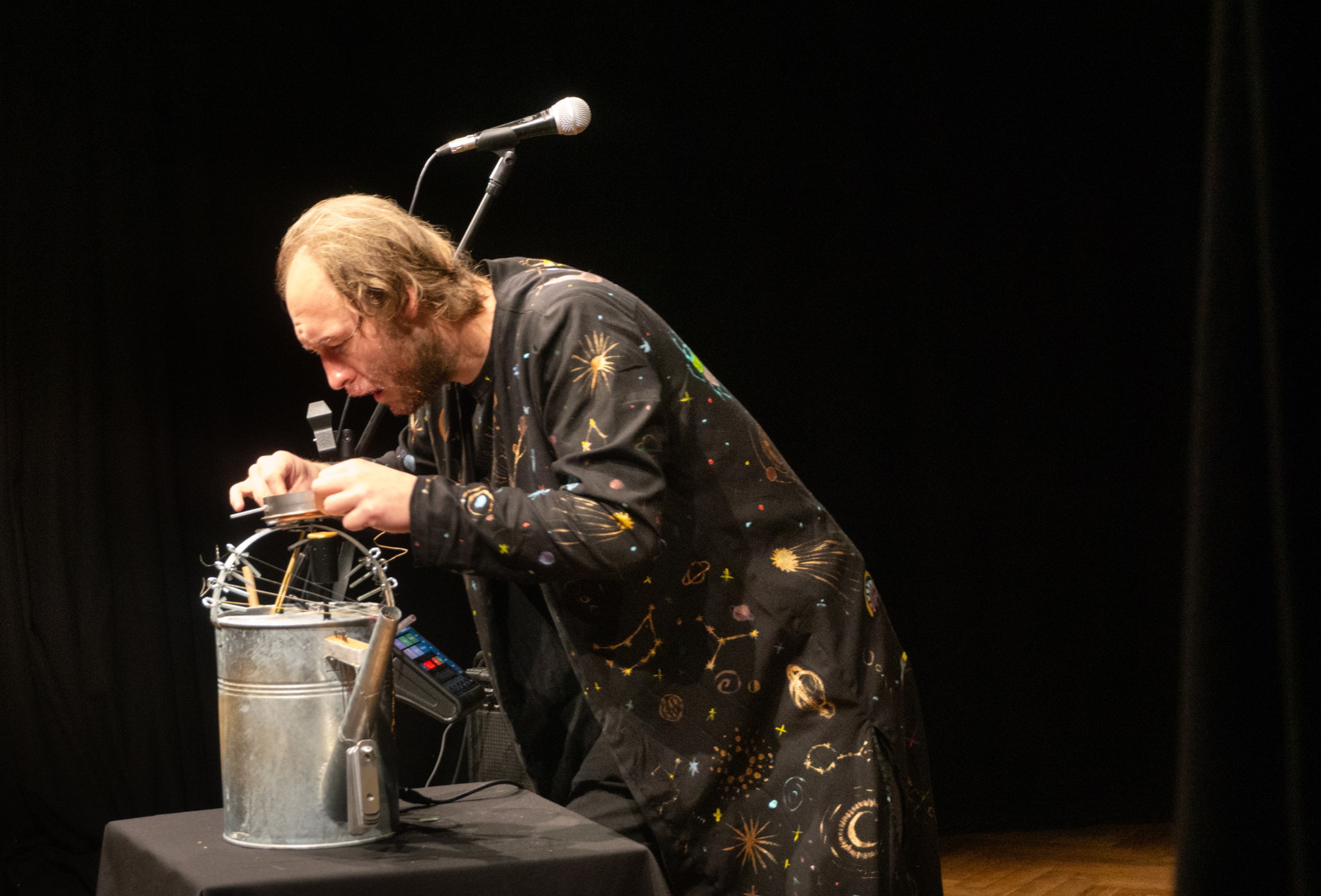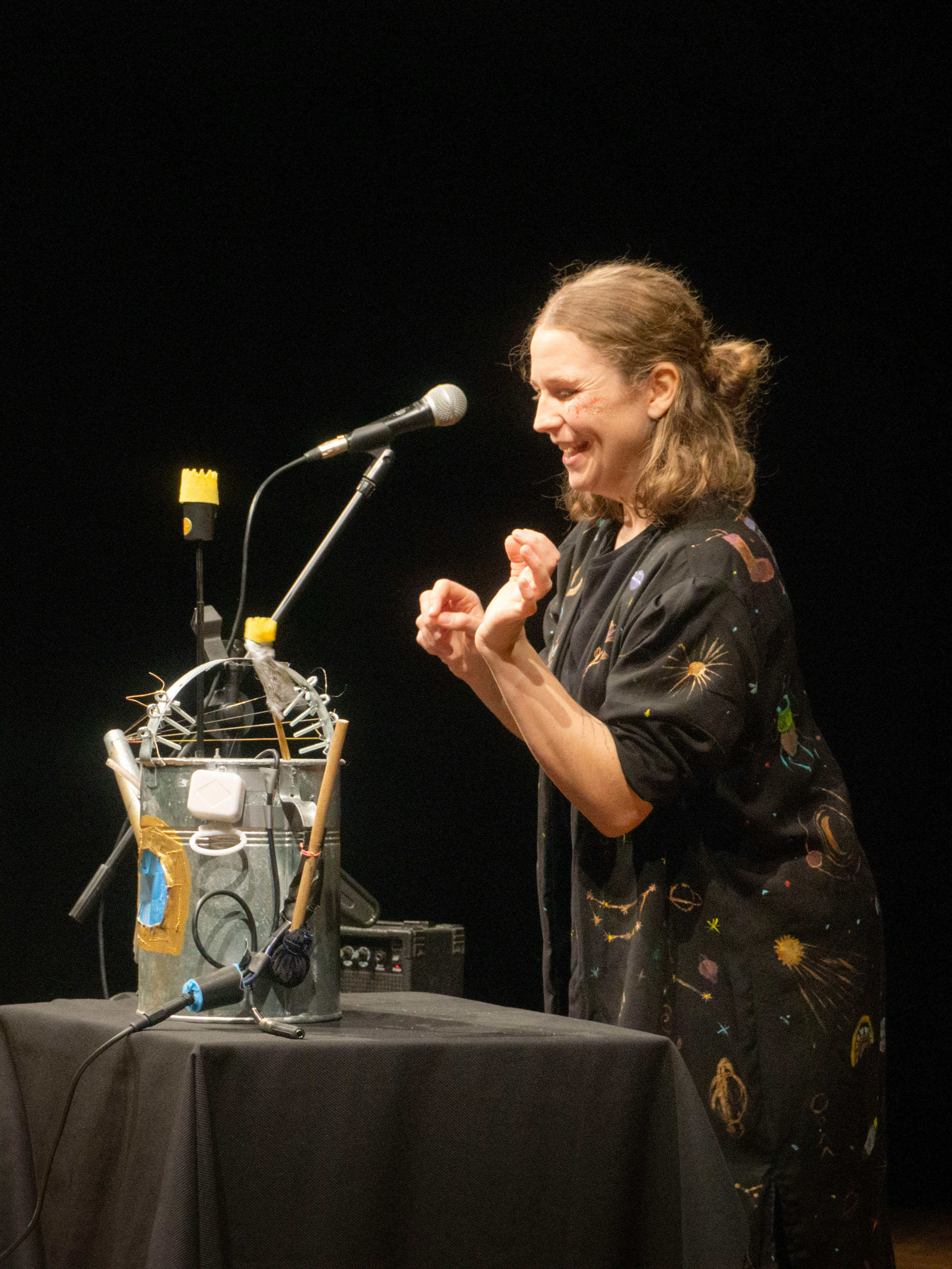 Inscenace vychází z předlohy od Astrid Lindgrenové Země soumraku. Herec vypráví dětem příběh a díky mikrofonu a vokálnímu procesoru, který může modulovat hlas a vytvářet různé efekty, vykouzlí pro děti iluzi různých prostorů a postav. Během představení si děti budou moct různé efekty a práci s mikrofonem vyzkoušet a díky tomu si některé postavy a atmosféry zažijí opravdu na vlastní kůži.