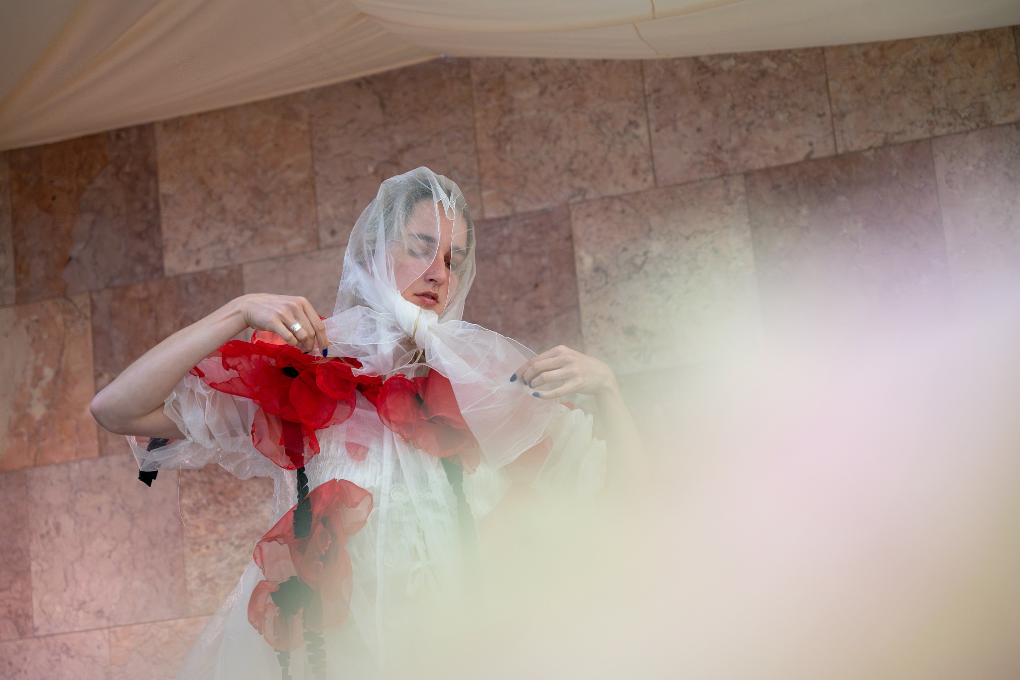 Růžový salonek ožil instalací a performancí talentované módní návrhářky Anny Tran, inspirovanou postavou Ofélie ze Shakespearova díla. Součástí vernisáže byla její debutová minipřehlídka, během níž se představené modely staly živou součástí prostoru. Po skončení akce se proměnily v umělecké exponáty, které mohli návštěvníci obdivovat v Růžovém salonku před každým představením.